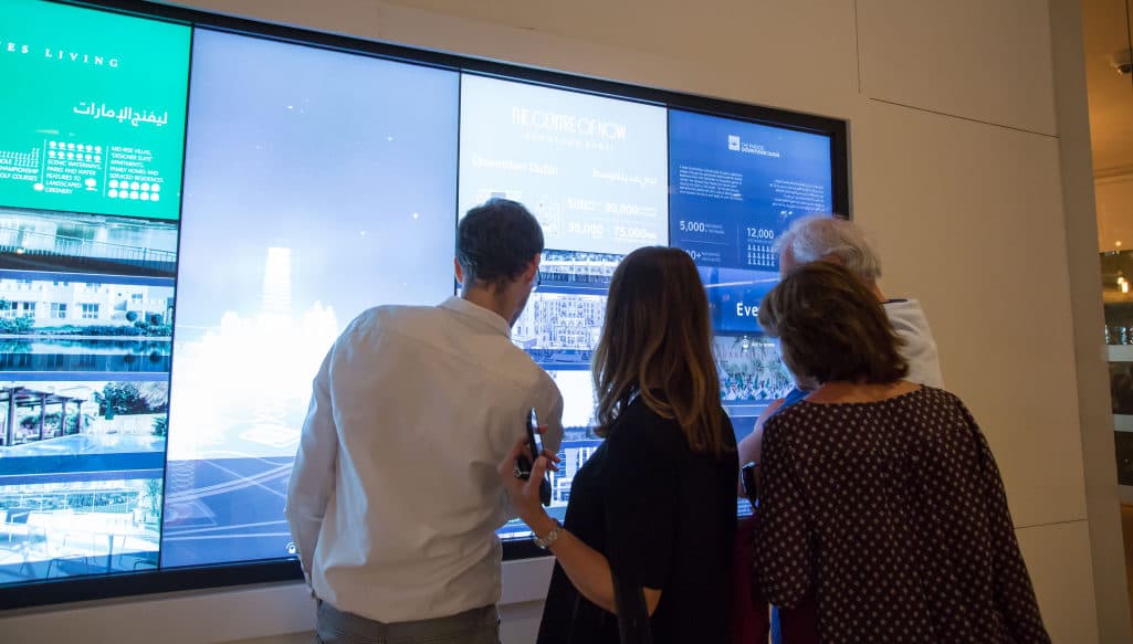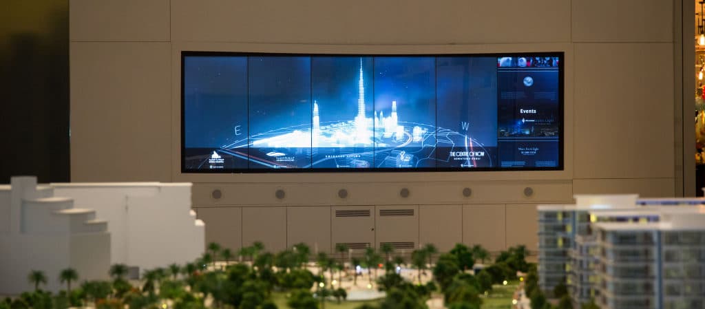 Intuitív, teljesen interaktív kialakítással és az EMAAR jellegzetes arculatával létrehoztunk egy többcélú kijelzőt, amely megragadta Dubai energiáját és eleganciáját, háttérként a kozmopolita Downtown Dubai-jal, valamint hangulatos hangtervezéssel, amely érzékeltette az EMAAR befolyásának nagyságát az emírségben.